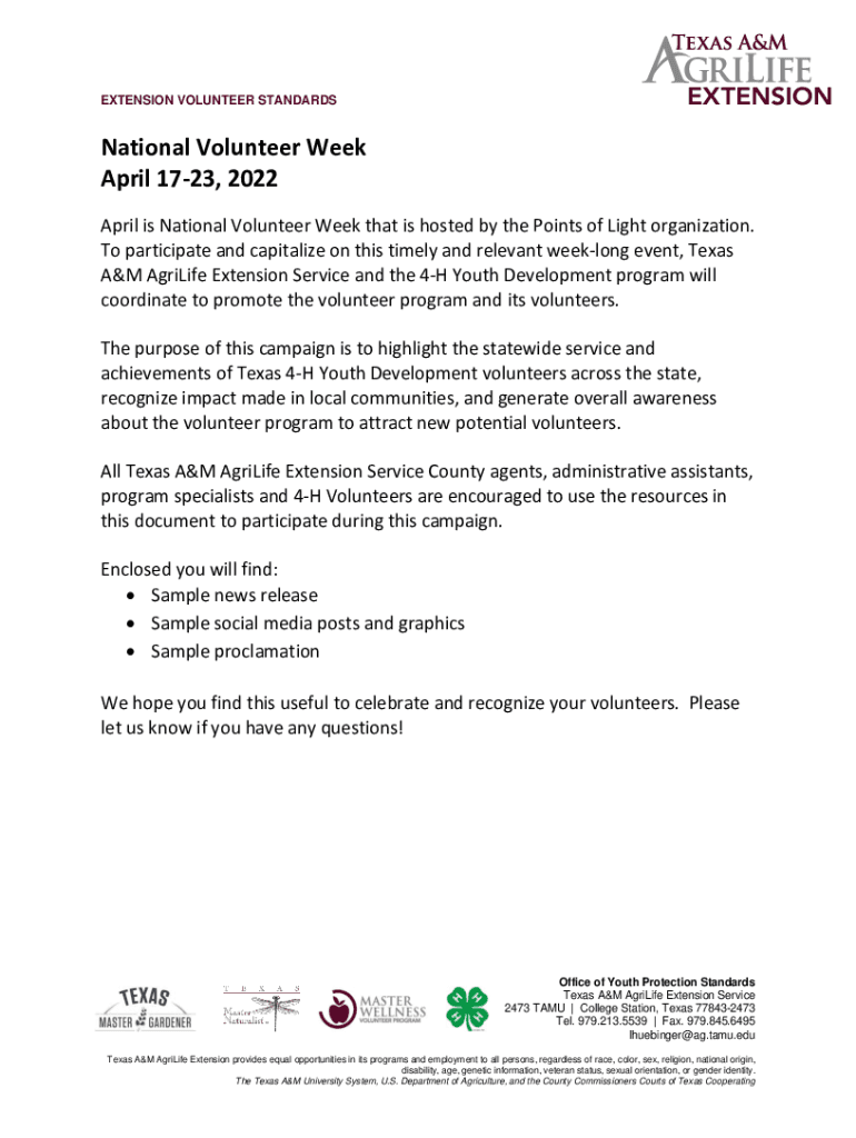 Get the free National Volunteer Week April 17-23, 2022 Texas 4-H - texas4-h tamu