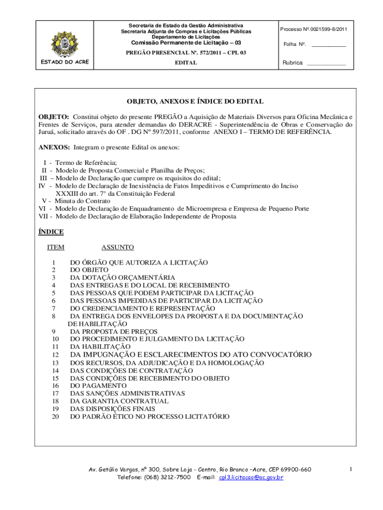Obtenha o gratuito OBJETO: Constitui objeto do presente PREGO a Aquisio de Materiais Diversos par...