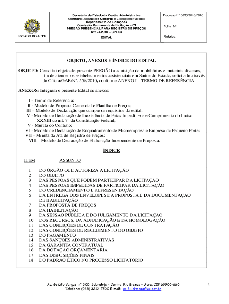Obtenha o gratuito OBJETO: Constitui objeto do presente PREGO a aquisio de mobilirios e materiais...