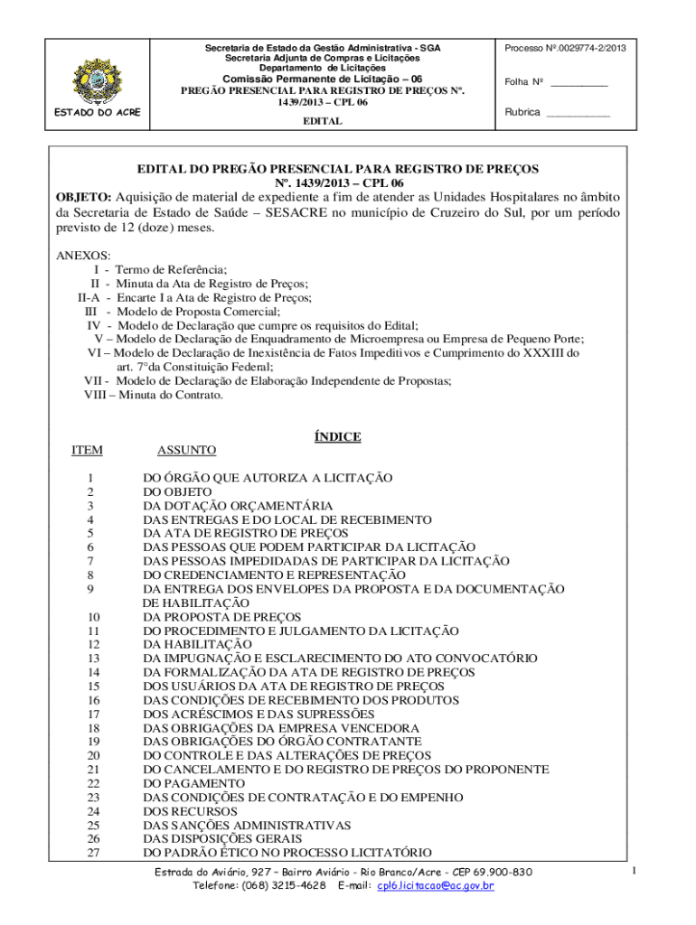 Secretariat de Estado the Gusto Administrative SGA Secretariat Ad junta DE Cameras e Lucites Department de LicitaesESTADO DO ACREComisso Permanent de Licitao 06 PRESO PRESENCE PARA REGISTRY DE PRESS