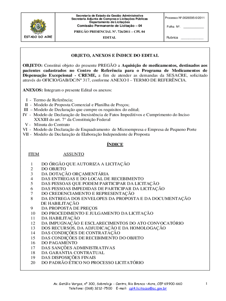 Obtenha o gratuito OBJETO: Constitui objeto do presente PREGO a Aquisio de medicamentos, destinad...