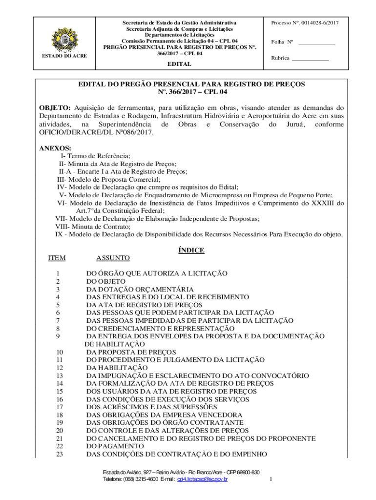 ESTATE DO ACRESecretaria de Estado the Gusto Administrative Secretariat Ad junta DE Cameras e Lucites Departments de Licitaes Comics Permanent de Licitao 04 CPL 04 PRESO PRESENCE PARA REGISTRY DE