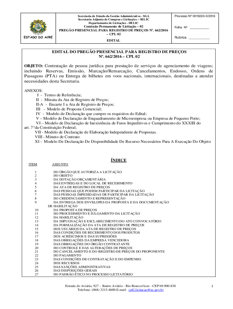 Department de Licitaes DELICESTADO DO ACREComisso Permanent de Licitao 02