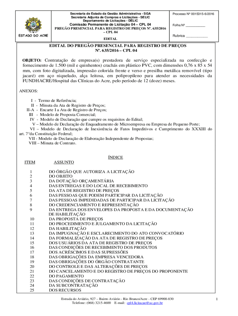 Department de Licitaes DELICESTADO DO ACREComisso Permanent de Licitao 04 CPL 04
