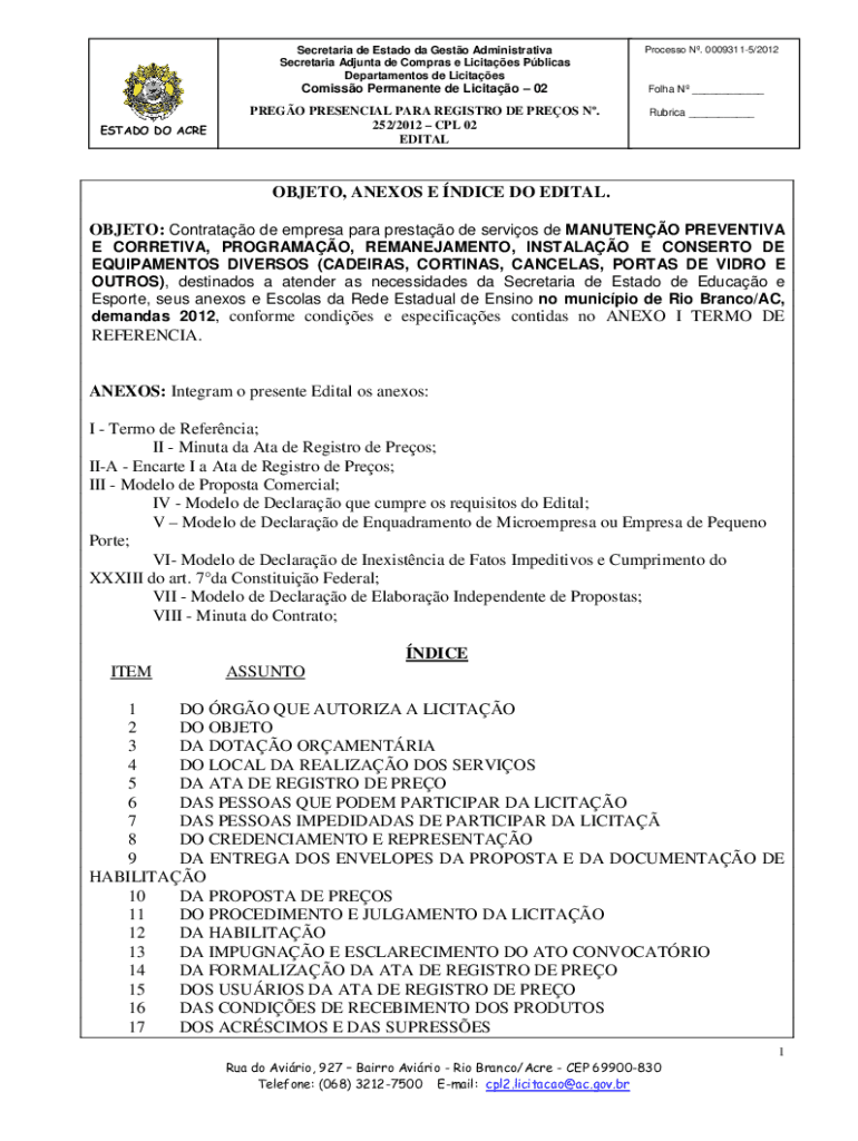 Obtenha o gratuito OBJETO: Contratao de empresa para prestao de servios de MANUTENO PREVENTIVA