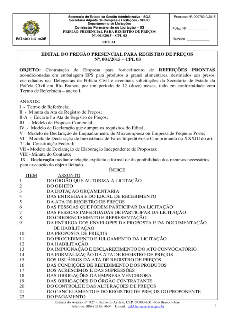 Department de LicitaesESTADO DO ACREComisso Permanent de Licitao 03