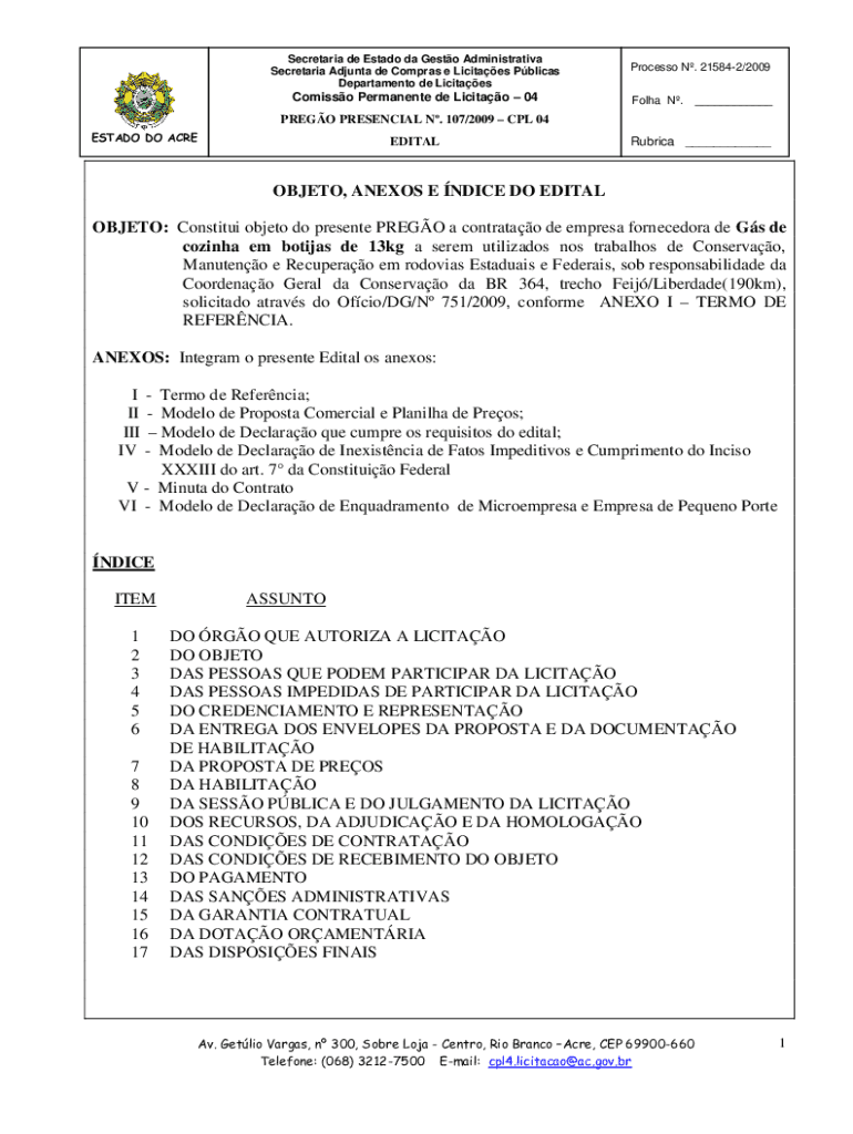 Obtenha o gratuito OBJETO: Constitui objeto do presente PREGO a contratao de empresa fornecedora ...