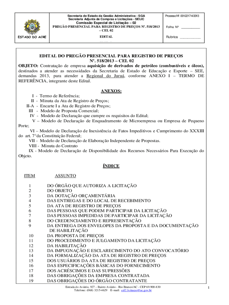 Secretariat de Estado the Gusto Administrative SGA Secretariat Ad junta DE Cameras e Lucites SELICProcesso N. 00122174/2013Comisso Especial DE Licit 02 PRESO PRESENCE PARA REGISTRY DE PRESS N. 518/2013