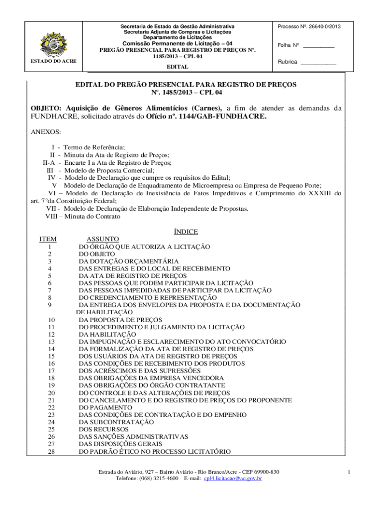Secretariat de Estado the Gusto Administrative Secretariat Ad junta DE Cameras e Lucites Department de LicitaesESTADO DO ACREComisso Permanent de Licitao 04 PRESO PRESENCE PARA REGISTRY DE PRESS N.