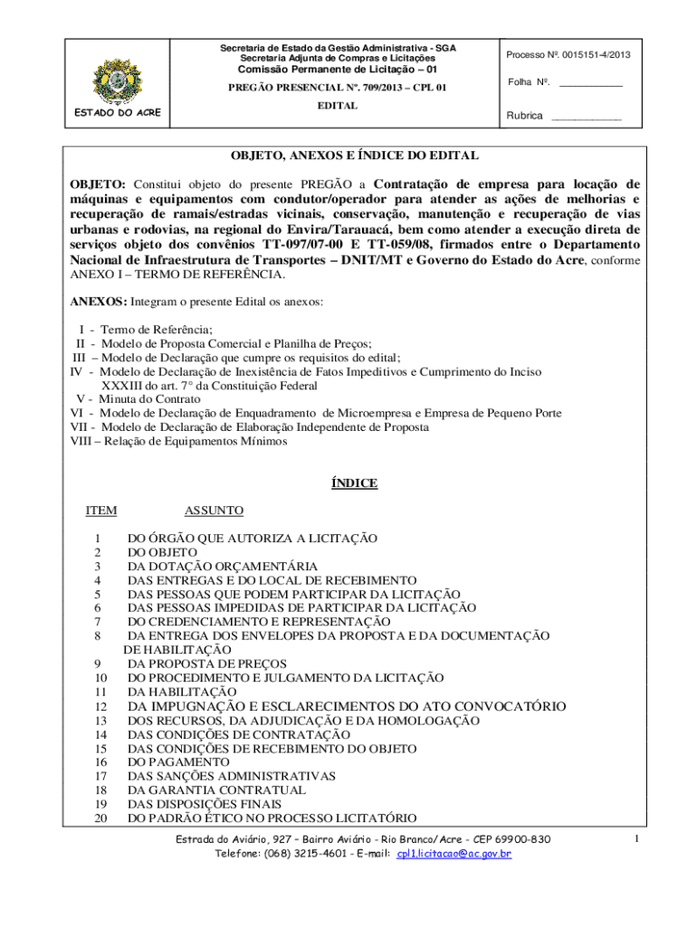 Secretariat Ad junta DE Cameras e LicitaesProcesso N. 00151514/2013Comisso Permanent de Licitao 01