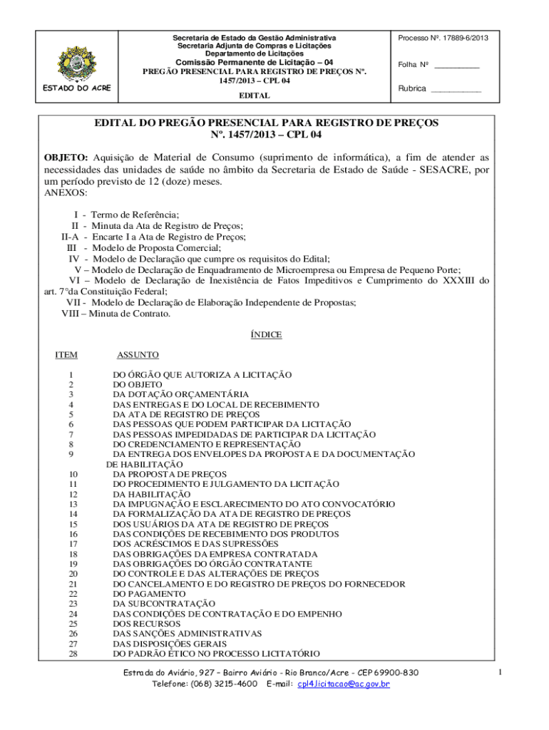 Secretariat de Estado the Gusto Administrative Secretariat Ad junta DE Cameras e Lucites Department de LicitaesESTADO DO ACREComisso Permanent de Licitao 04 PRESO PRESENCE PARA REGISTRY DE PRESS N.