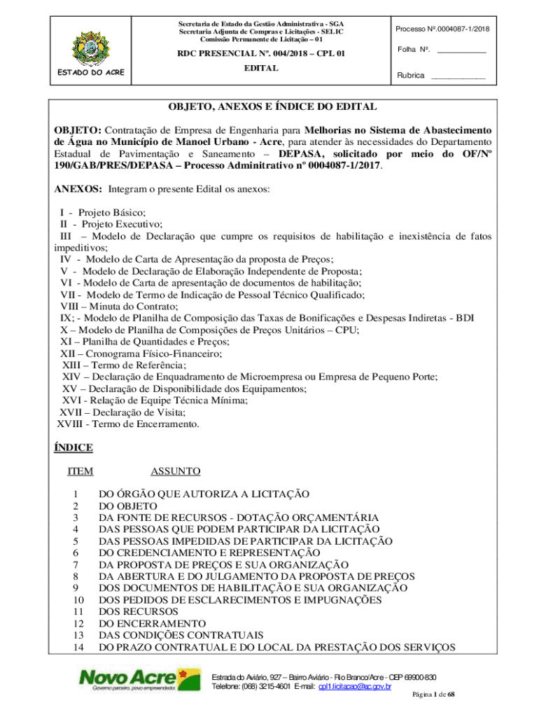 Secretariat de Estado the Gusto Administrative SGA Secretariat Ad junta DE Cameras e Lucites RELIC Comics Permanent de Licitao 01RDC PRESENCE N. 004/2018 CPL 01 EDITALESTADO DO Reprocess N.00040871/2018
