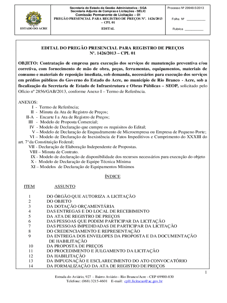 Secretariat Ad junta DE Cameras e Lucites SELICProcesso N 299485/2013Comisso Permanent de Licitao 01