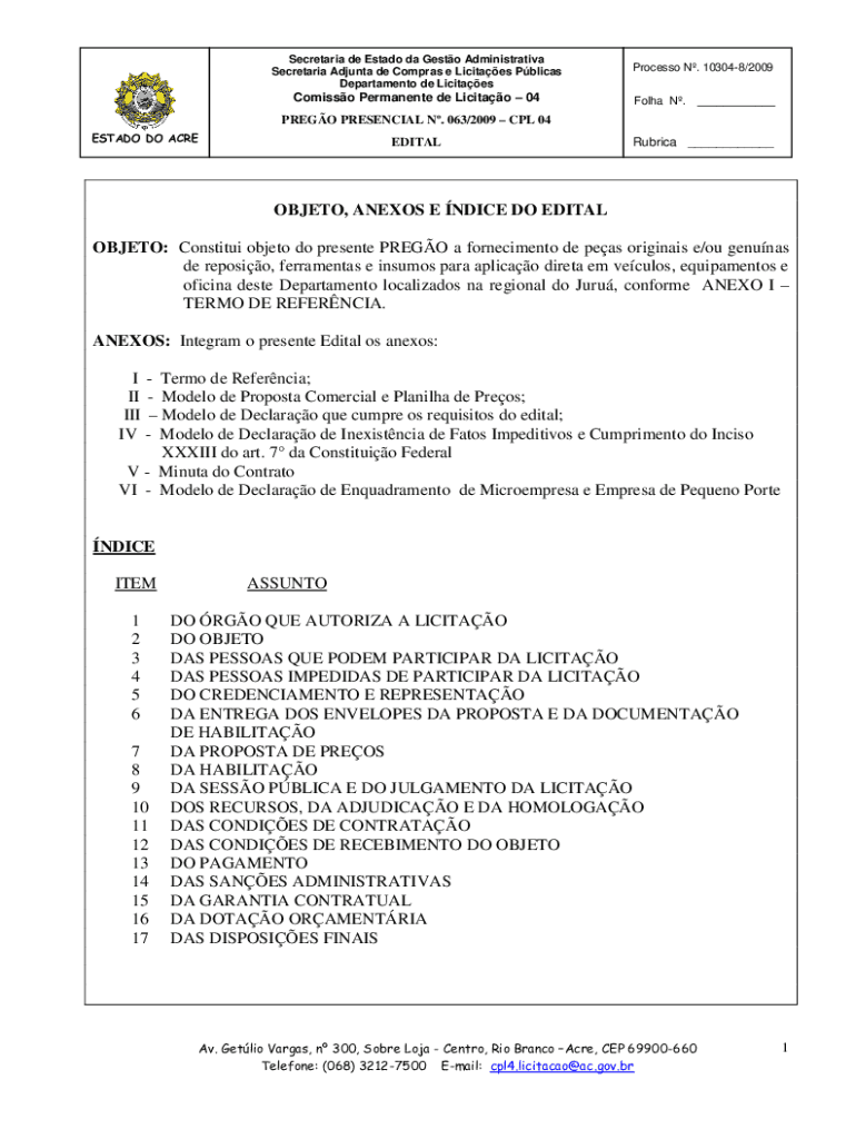 Secretariat de Estado the Gusto Administrative Secretariat Ad junta DE Cameras e Lucites Pelican Department de LicitaesComisso Permanent de Licitao 04Processo N. 103048/2009 Fol ha N.___PRESO PRESENCE