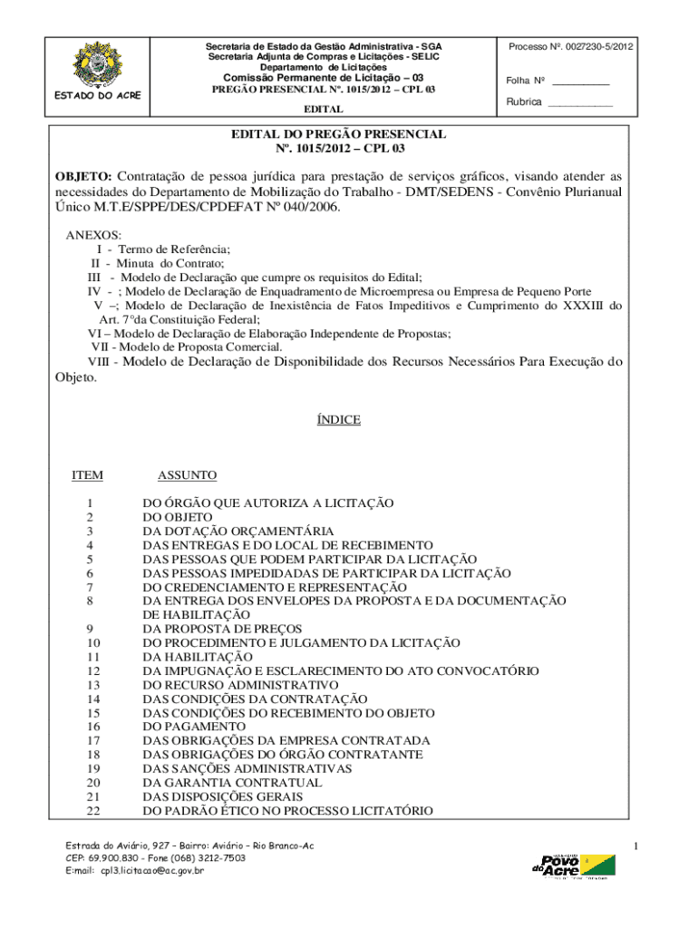 ESTATE DO ACREComisso Permanent de Licitao 03