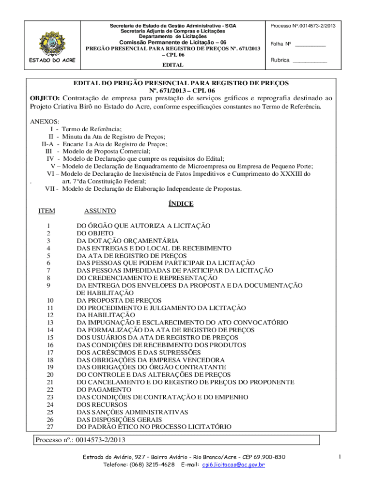 Secretariat de Estado the Gusto Administrative SGA Secretariat Ad junta DE Cameras e Lucites Department de LicitaesESTADO DO ACREComisso Permanent de Licitao 06 PRESO PRESENCE PARA REGISTRY DE PRESS
