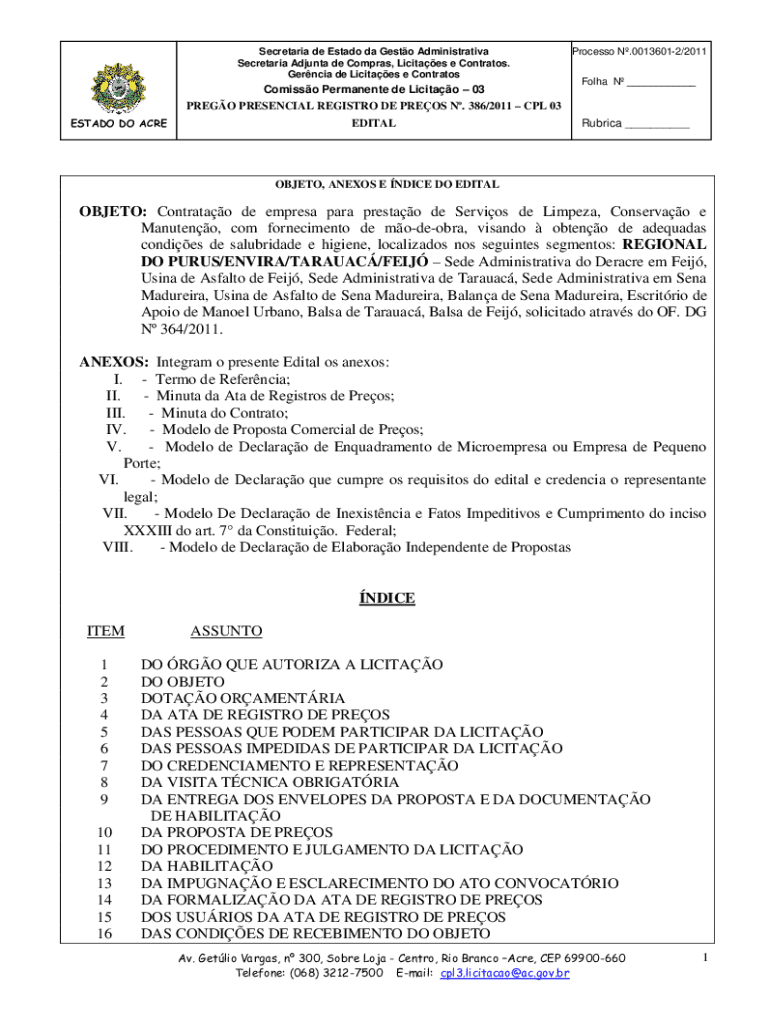Obtenha o gratuito OBJETO: Contratao de empresa para prestao de Servios de Limpeza, Conservao e