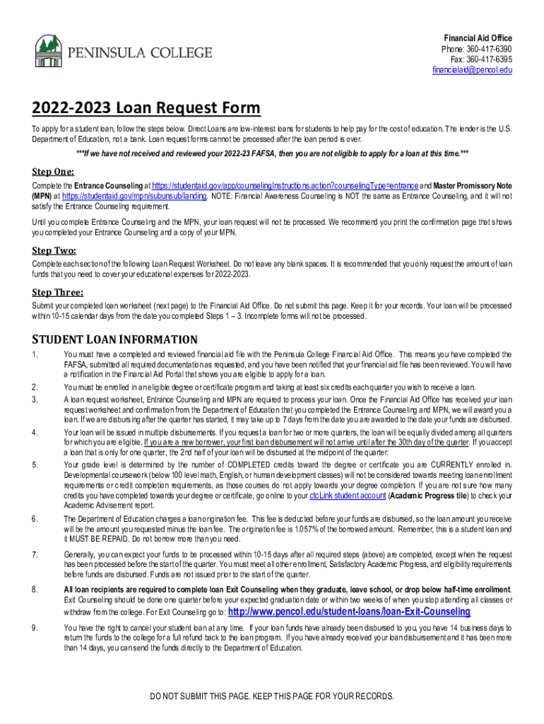 Financial Aid Office Phone: 3604176390 Fax: 3604176395 financialaid@pencol.edu20222023 Loan Request Form To apply for a student loan, follow the steps below. Direct Loans are low interest loans for