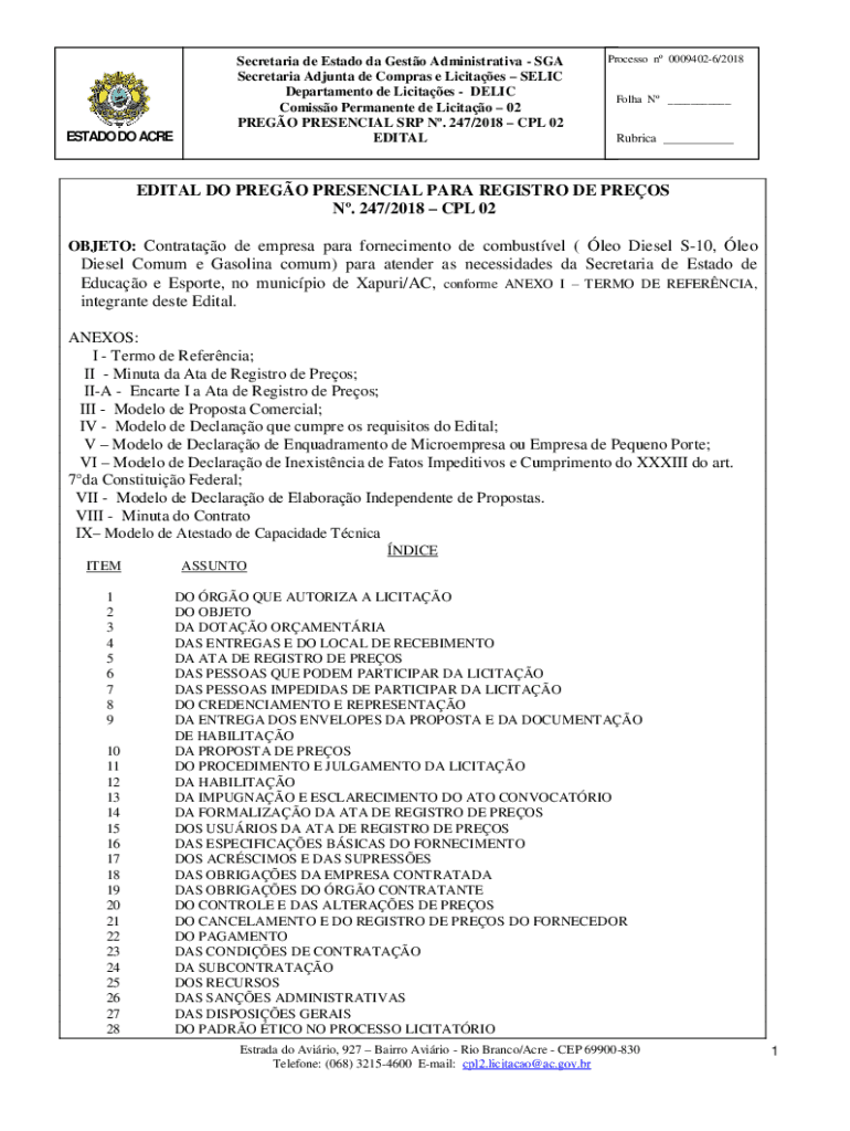 Obtenha o gratuito OBJETO: Contratao de empresa para fornecimento de combustvel ( leo Diesel S-10...