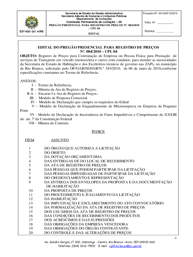 Department de LicitaesESTADO DO ACREComisso Permanent de Licitao 04