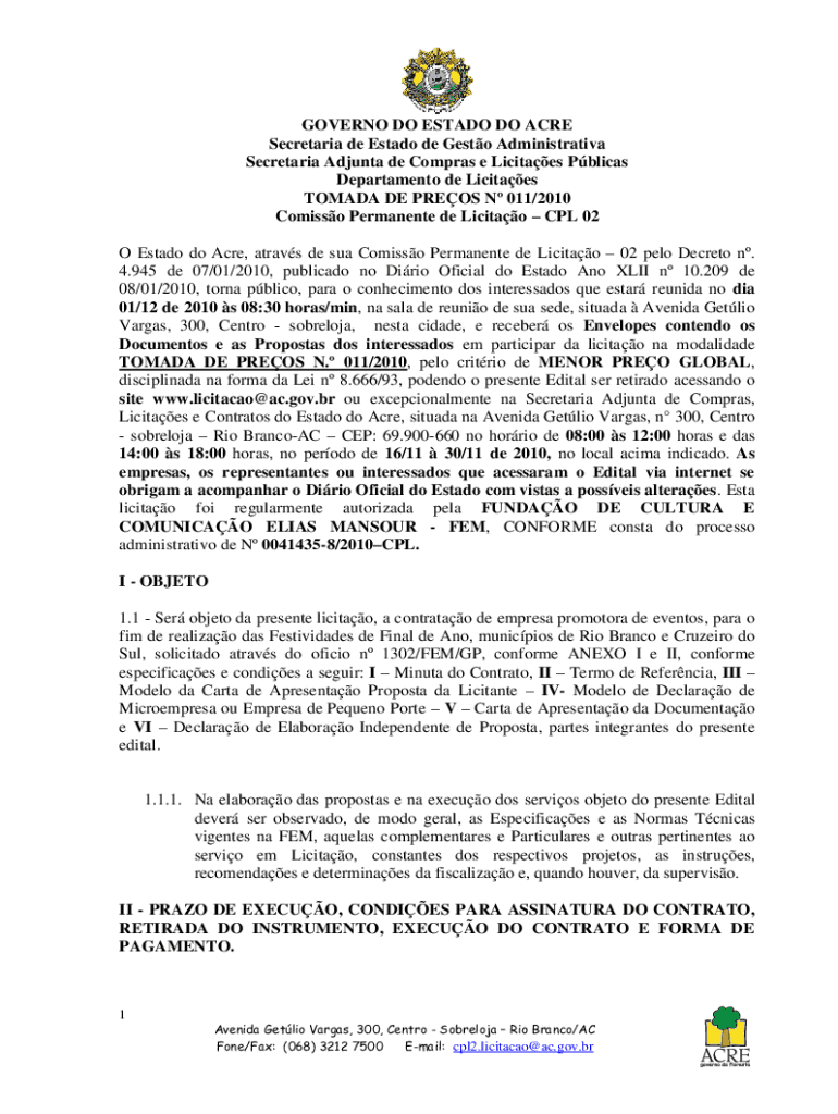 Obtenha o gratuito OBJETO: contratao de empresa promotora de eventos, ...