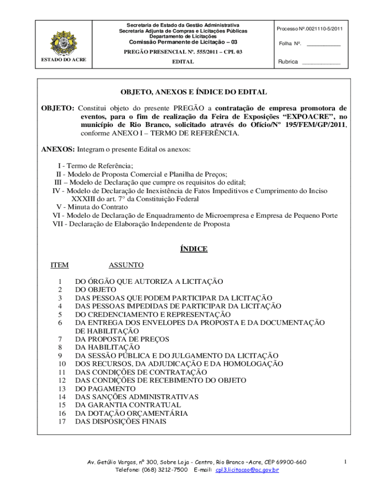 Secretariat de Estado the Gusto Administrative Secretariat Ad junta DE Cameras e Lucites Pelican Department de LicitaesComisso Permanent de Licitao 03Processo N.00211105/2011 Fol ha N.___PRESO PRESENCE