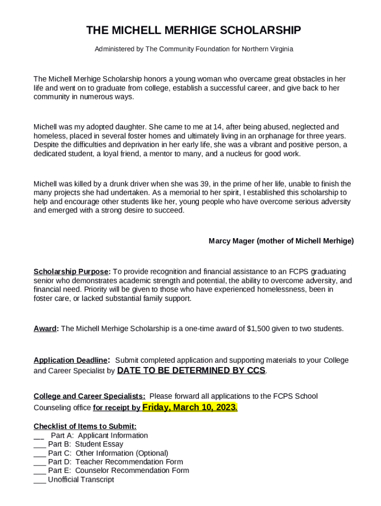 Instructions for the form 89 students earn scholarship awards from The Community ...