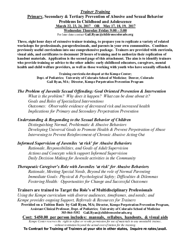 Get the free Trainer Training Primary, Secondary & Tertiary Prevention of ...
