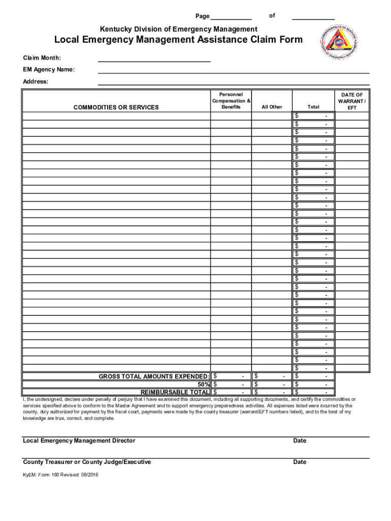 OfPageKentucky Division of Emergency ManagementLocal Emergency Management Assistance Claim Form