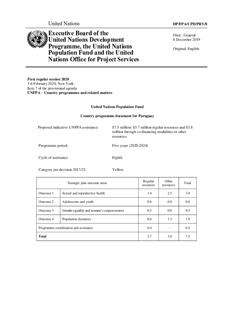 United Nations DP/FPA/CPD/PRY/8Executive Board of the United Nations Development Program, the United Nations Population Fund and the United Nations Office for Project ServicesDistr.: General 6 December