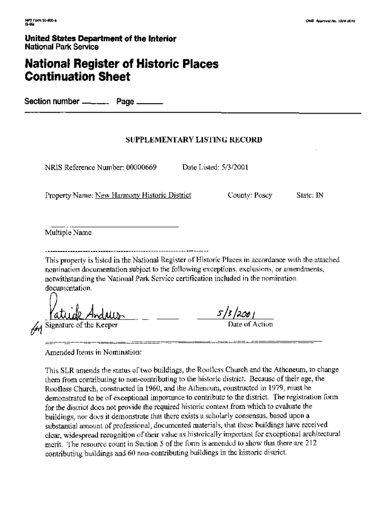 NPS Foot 10900a (886)OMB Approval No. 10240018United States Department of the Interior National Park ServiceNational Register of Historic Places Continuation Sheet Section number Page SUPPLEMENTARY