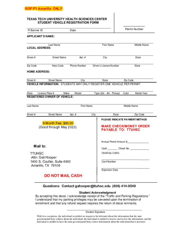 Edit your online ttuhsc vehicle registration form online