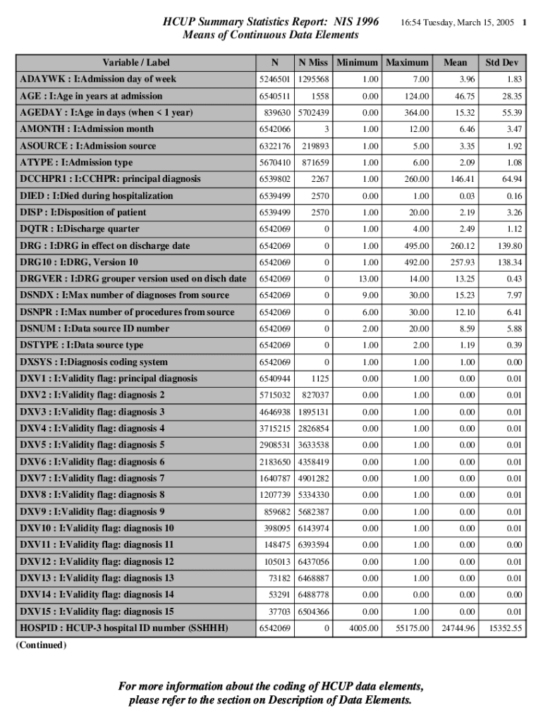 Get the free NIS Description of Data Elements - HCUP - AHRQ