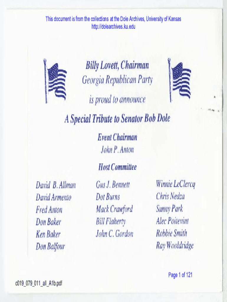 Get the free Billy Lovett, Chairman A Special Tribute to Senator Bob Dole - dolearchivecollection...