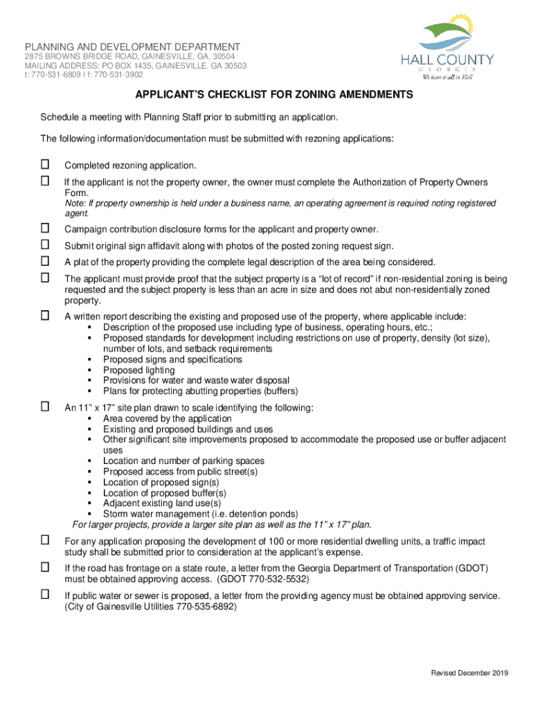 PLANNING AND DEVELOPMENT DEPARTMENT 2875 BROWNS BRIDGE ROAD, GAINESVILLE, GA, 30504 MAILING ADDRESS: PO BOX 1435, GAINESVILLE. GA 30503 t: 7705316809 I f: 7705313902APPLICANTS CHECKLIST FOR ZONING