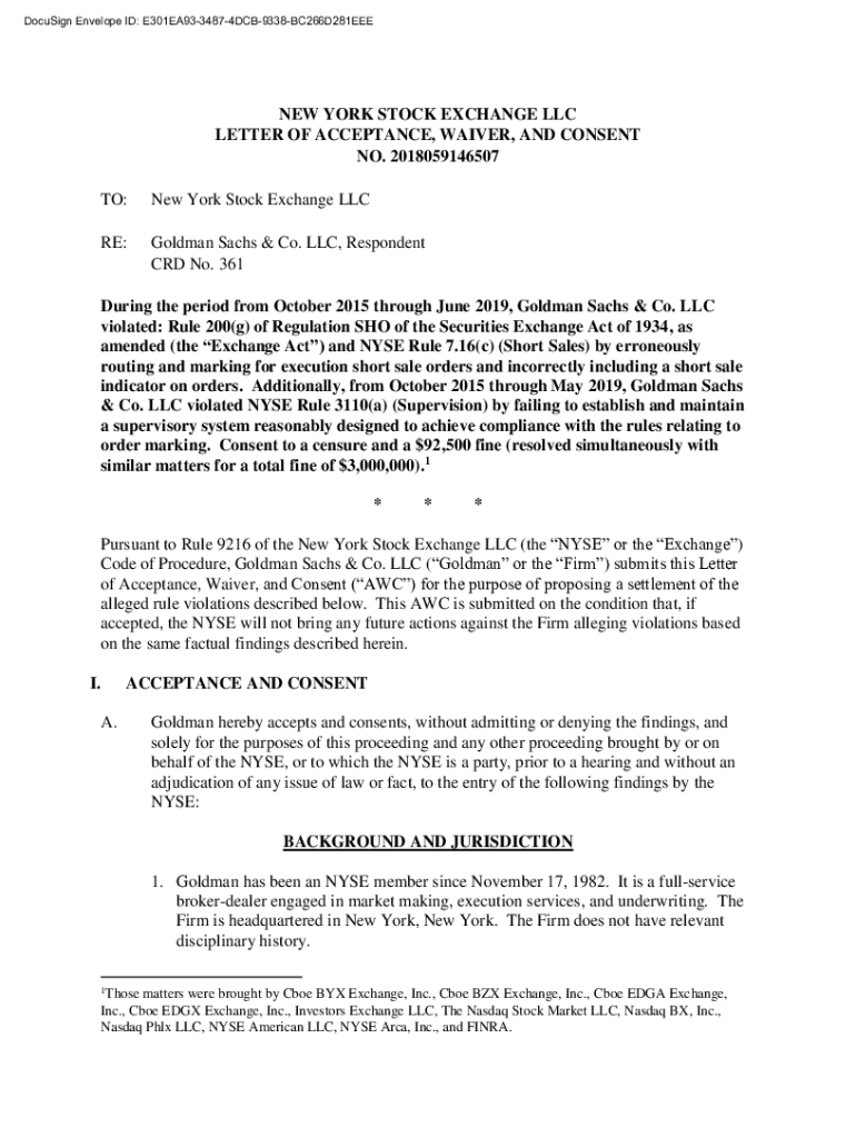DocuSign Envelope ID: E301EA9334874DCB9338BC266D281EEE 4DD2BD4A35B24C8CA628C1AE27E70890NEW YORK STOCK EXCHANGE LLC LETTER OF ACCEPTANCE, WAIVER, AND CONSENT NO. 2018059146507 TO:New York Stock Exchange