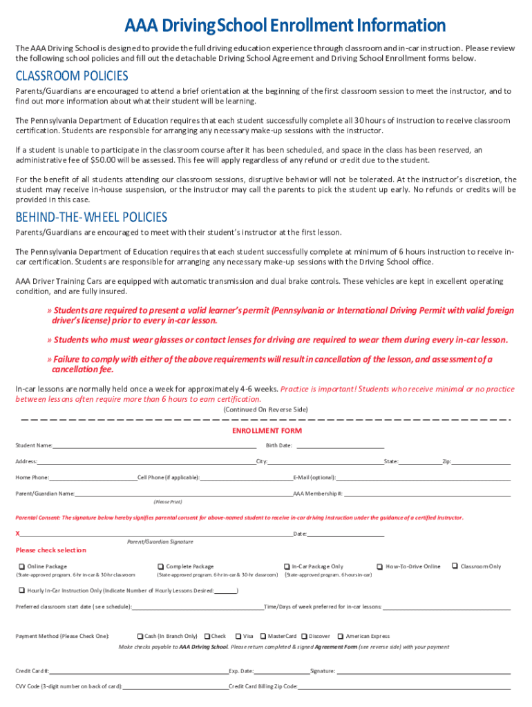 The AAA Driving School is designed to provide the full driving education experience through classroom and Inca instruction. Please review