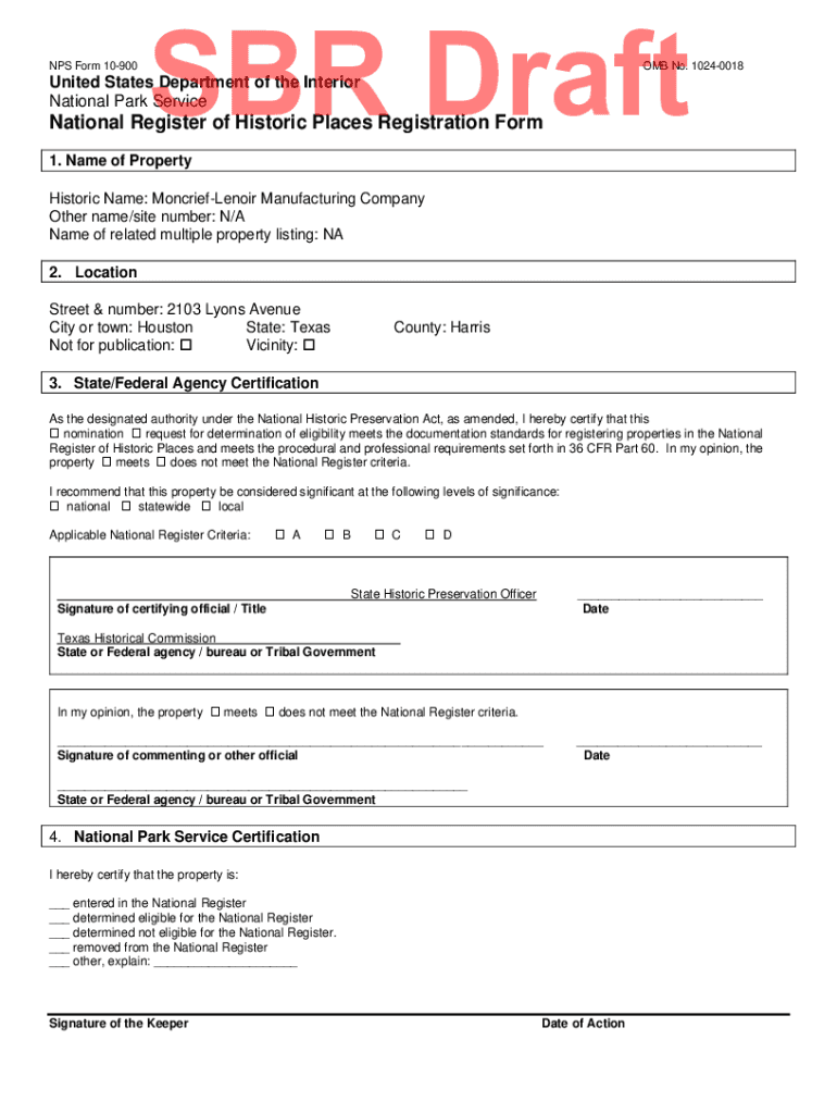 NPS Form 10900SBR Draft OMB No. 10240018United States Department of the Interior National Park ServiceNational Register of Historic Places Registration Form 1. Name of PropertyHistoric Name: MoncriefLenoir
