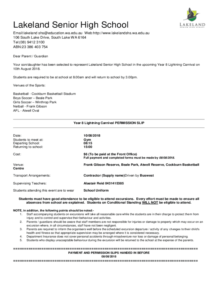 Lakeland Senior High School Email:Lakeland shs@education.wa.edu.au Web:http://www.lakelandshs.wa.edu.au 106 South Lake Drive, South Lake WA 6164 Tel:(08) 9412 3100 ABN:23 386 403 754 Dear Parent /