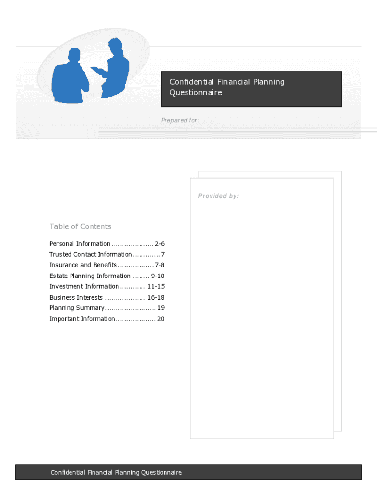 Confidential Financial Planning Questionnaire Prepared for:Provided by:Table of Contents Personal Information .................... 26 Trusted Contact Information............. 7 Insurance and Benefits