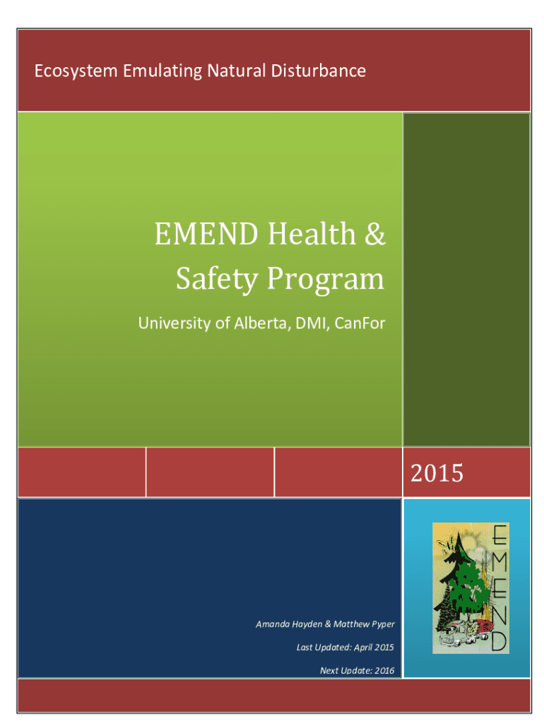 Ecosystem Emulating Natural DisturbanceEMEND Health & Safety ProgramUniversity of Alberta, DMI, CanFor2015Amanda Hayden & Matthew Paper Last Updated: April 2015 Next Update: 2016EMEND Safety Plan