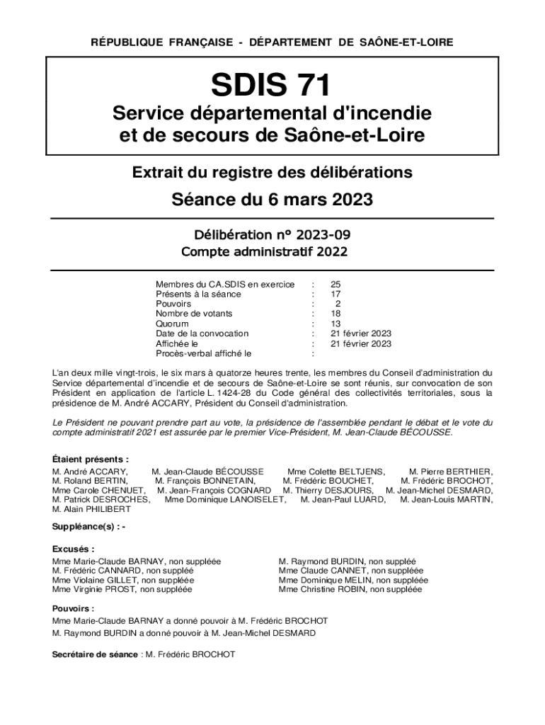 Extract Du register DES dlibrationsSance Du 6 Mars 2023