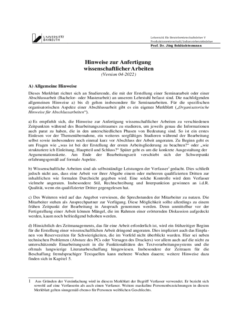 Produktionswirtschaft/IndustriebetriebslehreProf. Dr. Jr SchlchtermannHinweise our Anfertigung