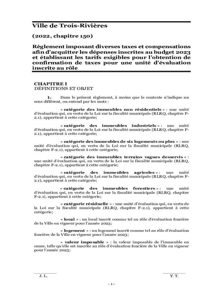 Villa de TroisRivires (2022, chapter 150) Element important diverse taxes ET compensations akin acquitted LES defenses inscribes AU budget 2023 ET talisman LES tariff eligible pour contention DE confirmation