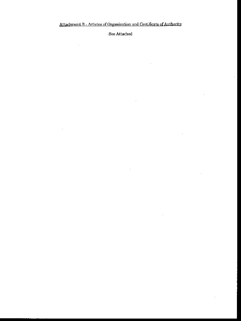 Attachment B Articles of Organization and Certificate of Authority See AttachedARTICLES OF ORGANIZATION Form 7.80.204.1 revised 11/13/2000 Filing fee: $50.00 This document must be typed or machine