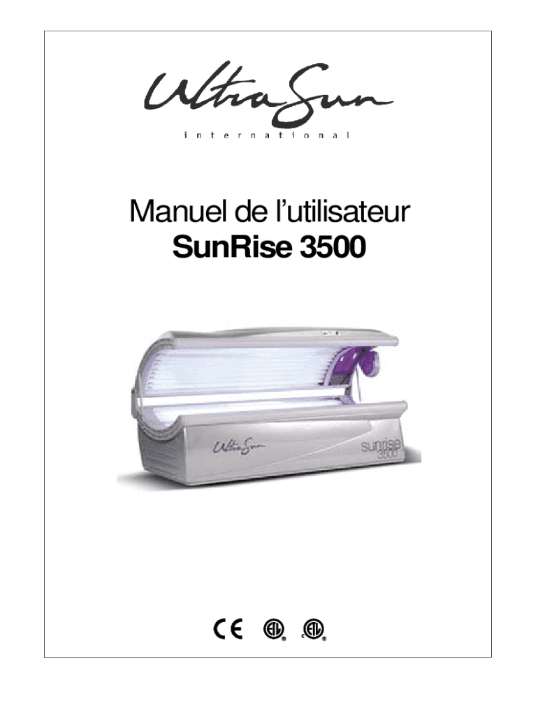 Manuel de lutilisateur Sunrise 3500AVERTISSEMENT Life LE mode d\'employ of consulted LE personnel savant d\'utilizer l\'apparel. La line d\'alimentation dot TRE quite DE fusible temptress. La tension