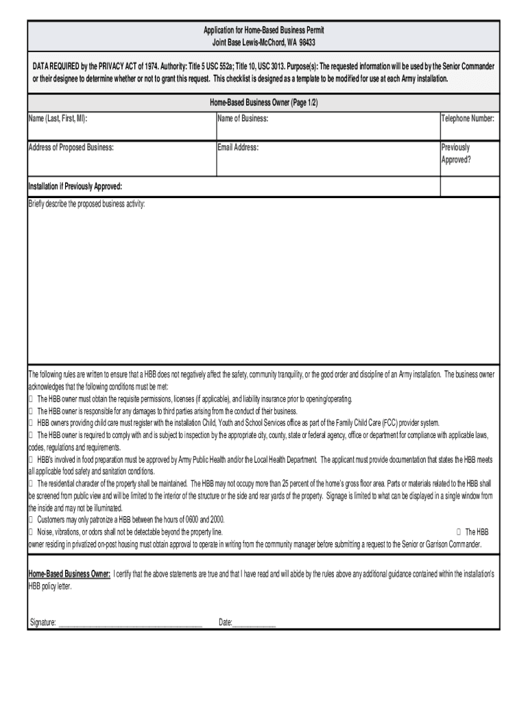 Get the free Application for Home-Based Business Permit Joint Base Lewis ...