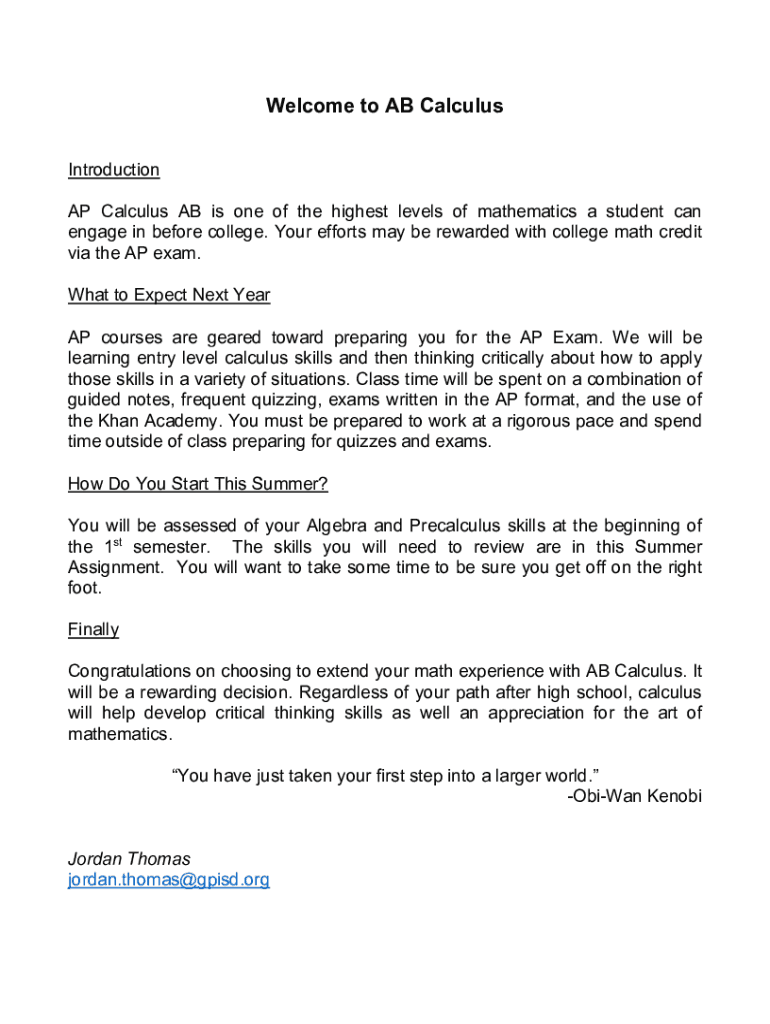 Get the free AP Calculus Ab DisclosureTimpview High School