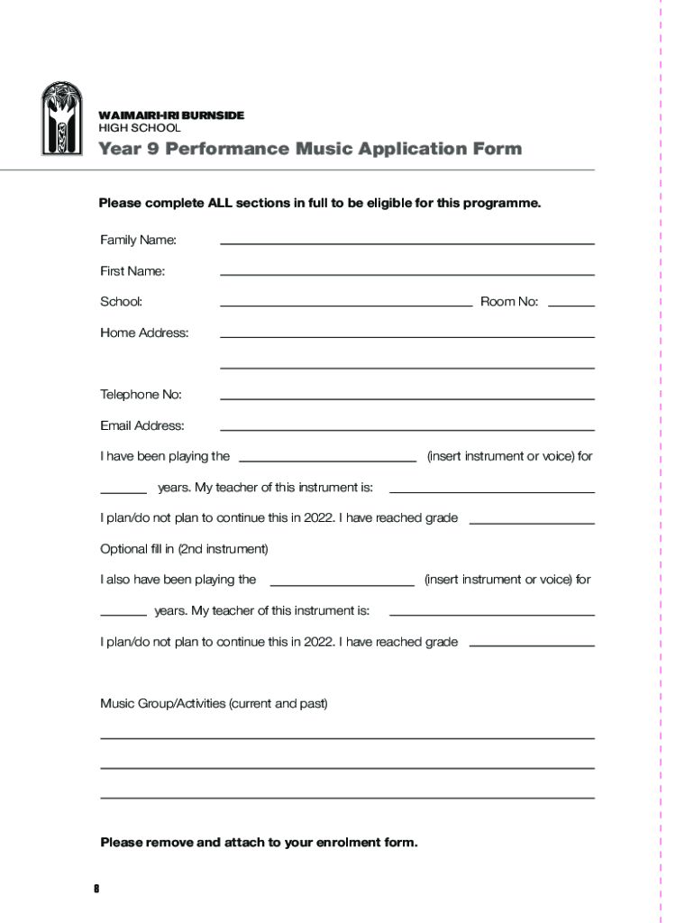 Get the free Year 9 Performance Music Application Form