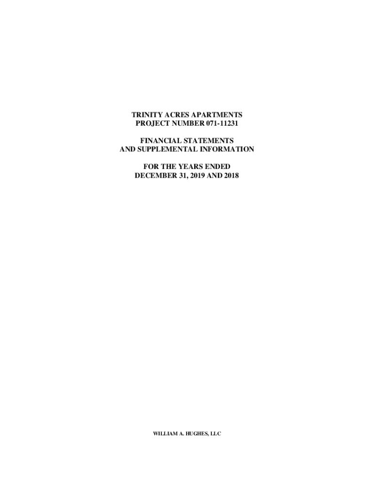 TRINITY ACRES APARTMENTS PROJECT NUMBER 07111231 FINANCIAL STATEMENTS AND SUPPLEMENTAL INFORMATION FOR THE YEARS ENDED DECEMBER 31, 2019, AND 2018WILLIAM A. HUGHES, LOCKABLE OF CONTENTSPAGE Independent